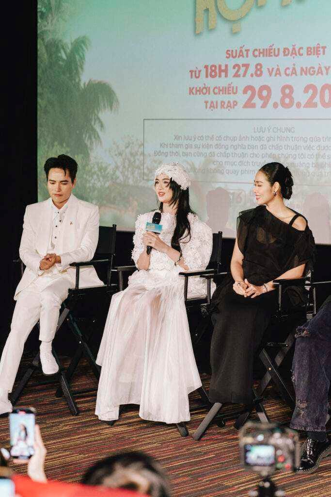 Tôi rất thích content của anh Võ Tấn Phát, thích việc được anh Tuấn Trần bế,… Tôi cảm thấy hạnh phúc vì được đóng cùng những diễn viên chất lượng như vậy. Có những lúc tôi stress quá khiến cân nặng tăng. Vì vậy, tôi rất cảm ơn khi thấy anh chị hết mình khi tương tác cùng tôi”.