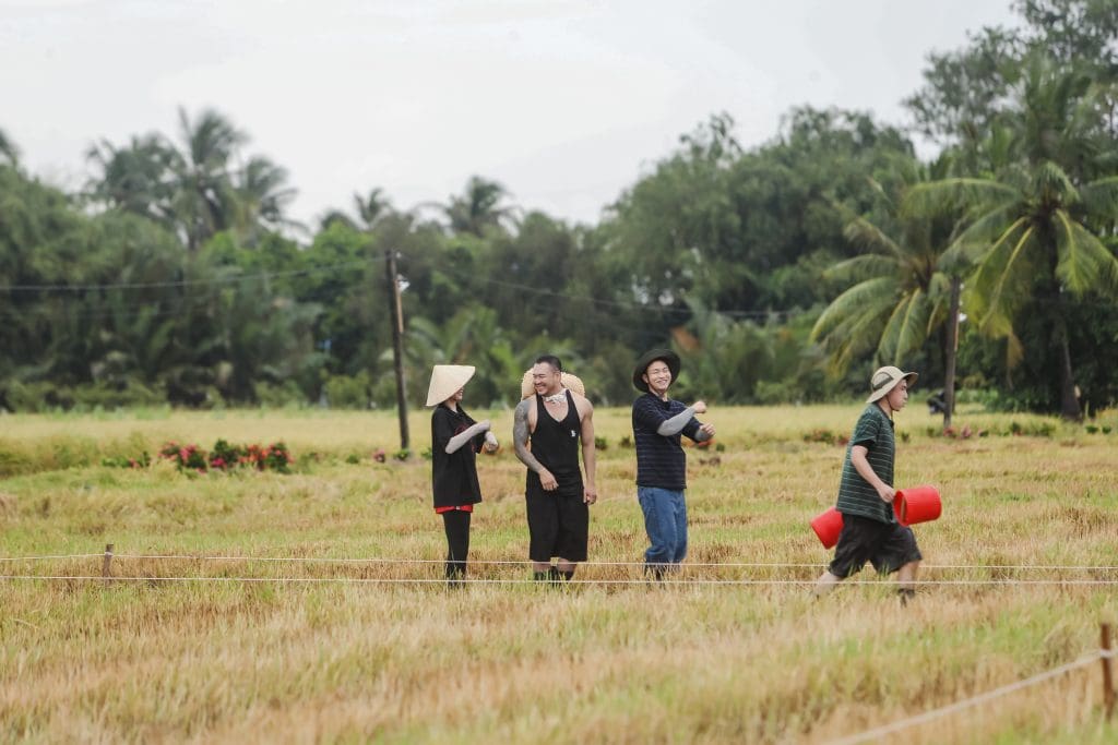 Với đội “bướm đêm”, Khuyến Dương cũng lăn xả hết mình dù liên tục bỏ lại ủng và gặp sự cố tụt quần khiến dàn cast liên tục bật cười. Hai thành viên còn lại là Hương Giang và Tuấn Ngọc cũng phối hợp nhịp nhàng trong chuỗi thử thách liên hoàn kế tiếp khiến các hàng xóm còn lại không khỏi bất ngờ.